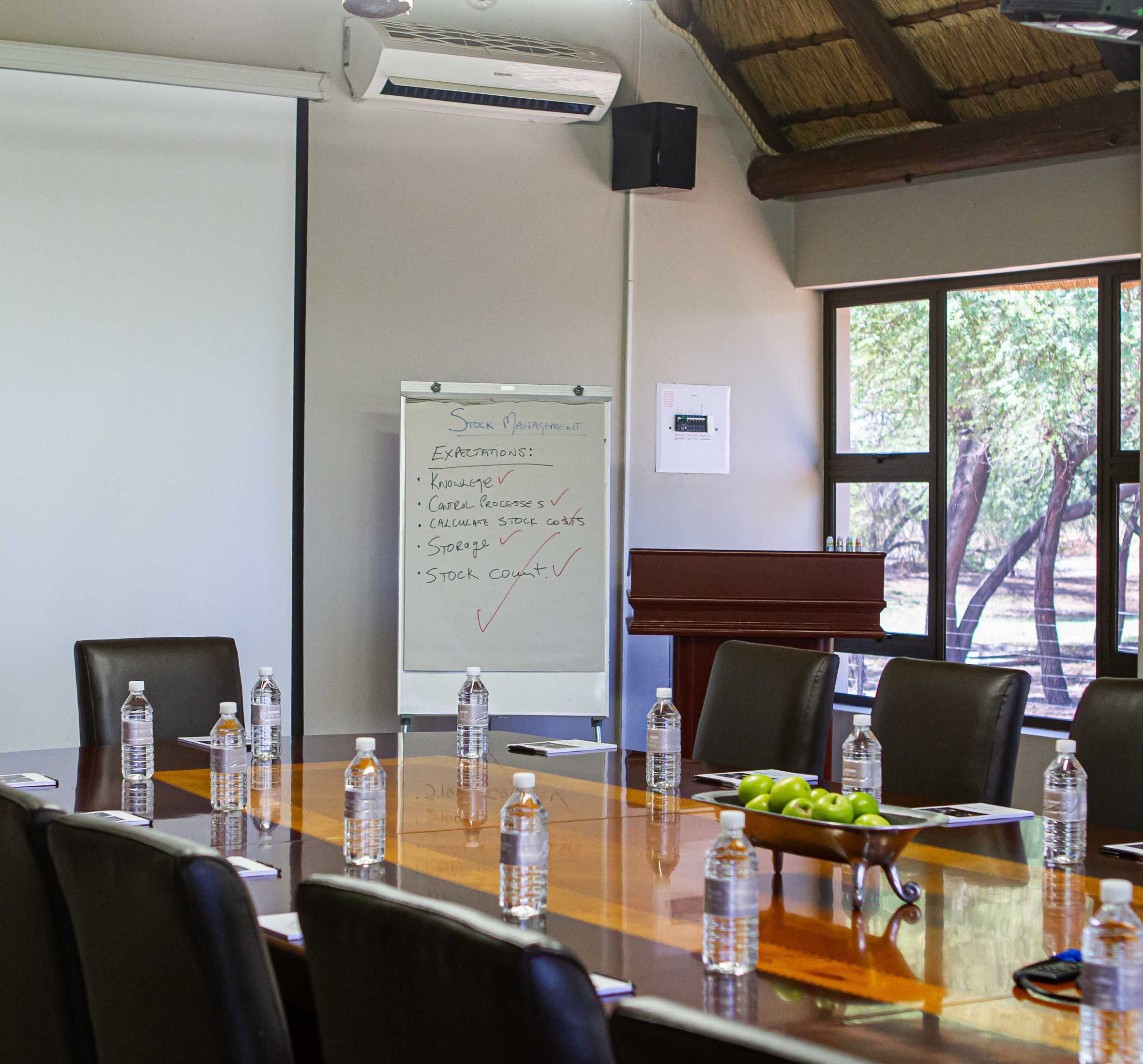 Our executive boardroom facility configured with a solid wooden boardroom table accommodates 18 guests. Overlooking the Mogol River and our secluded Njala camp this private building is ideal for corporate meetings, strategy building sessions & smaller conferencing requirements.